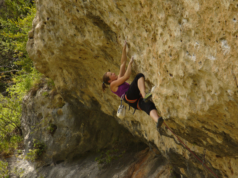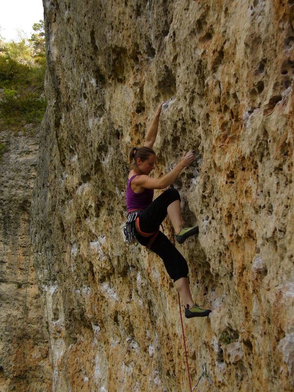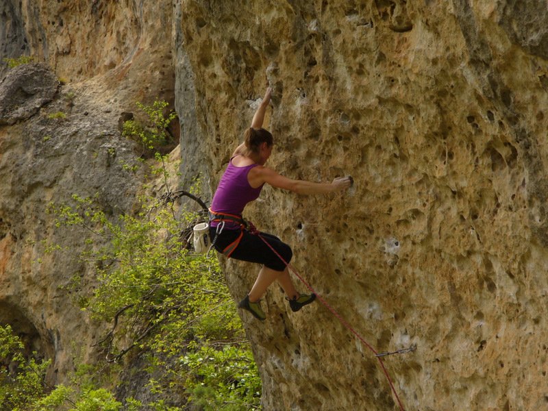 Skała w tym rejonia jest wyjątkowo łaskawa, jeśli chodzi o przystępność dróg. Znam osoby, które twierdzą, że tamtejsze wspinanie jest łatwe. Ja powiedziałabym, że to typowe francuskie wspinanie w przewieszonym wapieniu. W Tarnie spotyka się bardzo długie drogi, 50m to żadna rzadkość a bywają również 7o-metrowe! Oczywiste zatem jest, że główna trudność takiej drogi polega na czym innym niż drogi 10-metrowej… Tak, czy inaczej zwolennicy długiego wytrzymałościowego wspinania znajdą dla tu dla siebie prawdziwe perełki. Ciekawe jest, że poza nielicznymi rejonami francuskimi (Ceuse, Durbie, Jonte) do niedawna nie praktykowano robienia drugich wyciągów w ciągu i wyceniania ich za całość – jakojedną drogę. Z tego co wiem Tarn jest stosunkowo nowatorski pod tym względem.