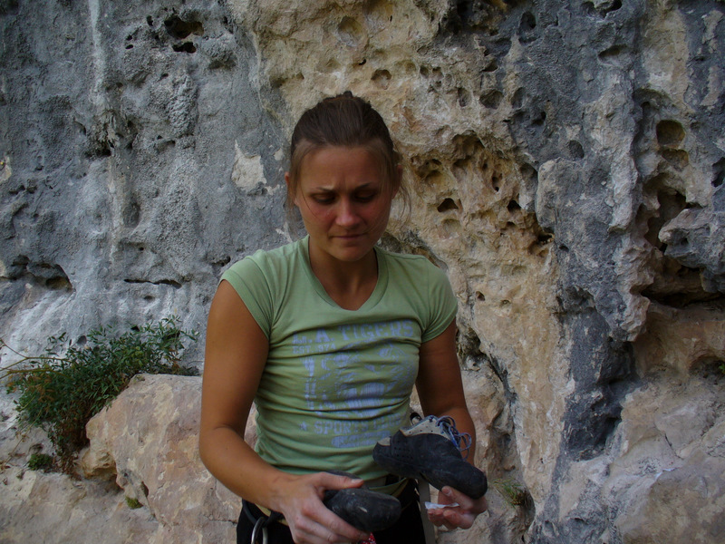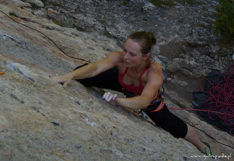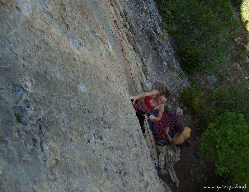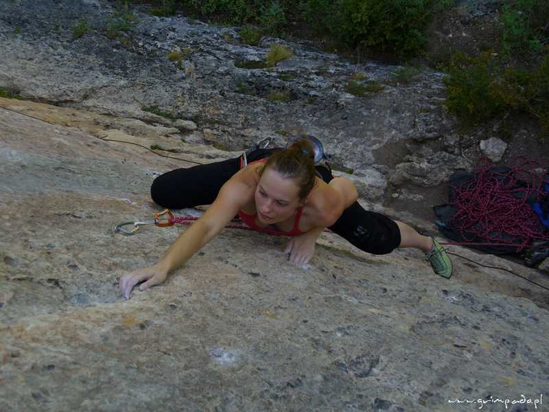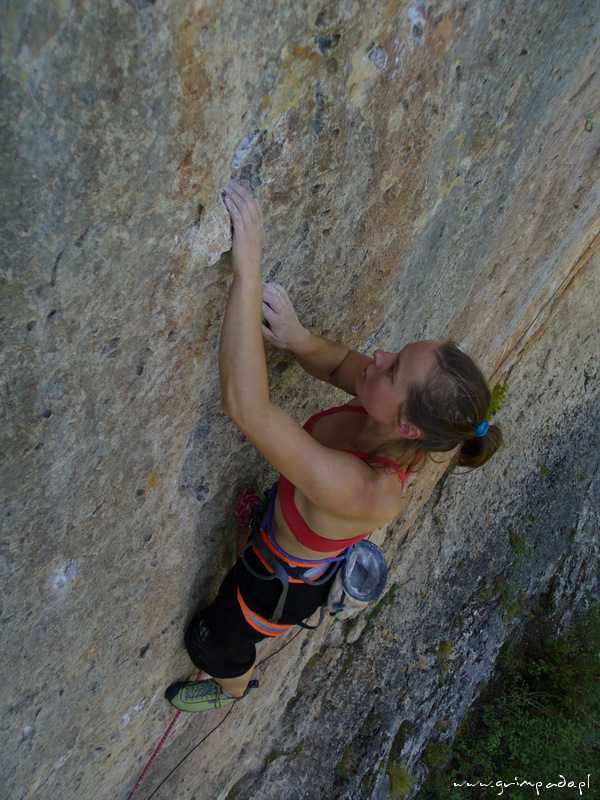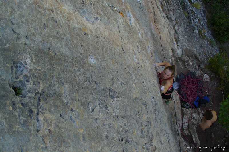 . Przedostatniego dnia wspinania w przypływie ostatniej fali spręża przystawiliśmy się do pięknej 55-metrowej 7c+. Woziu flash’ował mi ją. Niestety po przejściu 50 metrów droga zrzuciła mnie z przysłowiowych traw! Droga nie zrobiona, ale wspominam o tym, gdyż nigdy nie byłam tak blisko zrobienia tak trudnej drogi flash a moje wrażenie bliskości dało mi tyle wiary w robienie takich dróg w przyszłości, że aż uśmiecham się do siebie pisząc te słowa. Chciałabym móc oddać trochę tej wspinaczkowej wiary wszystkim po trochu