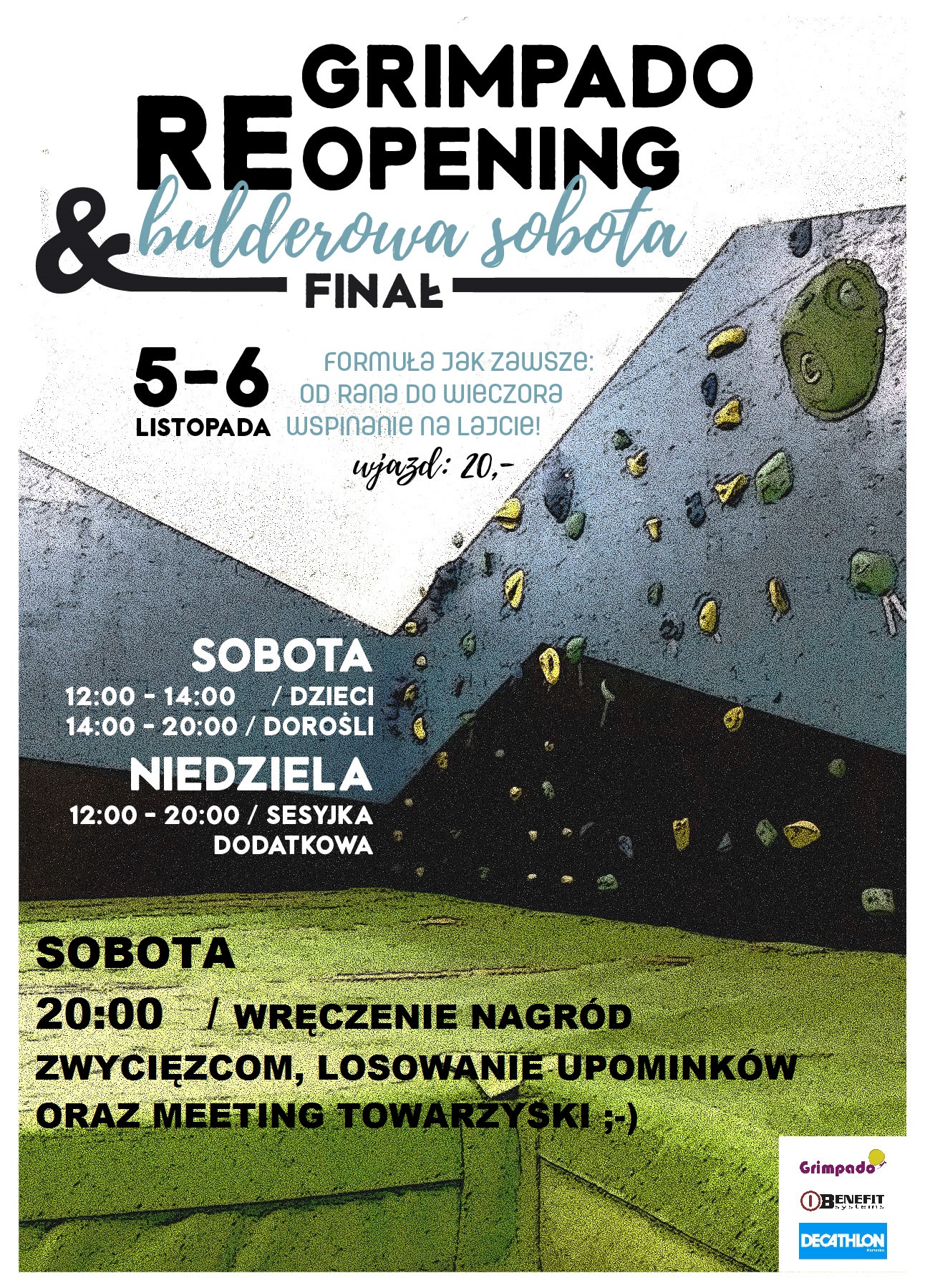 20:00 – LICZENIE WYNIKÓW, OGŁOSZENIE ZWYCIĘŻCÓW BULDEROWEJ SOBOTY ORAZ LOSOWANIE NAGRÓD WŚRÓD WSZYSTKICH UCZESTNIKÓW, IMPREZKA